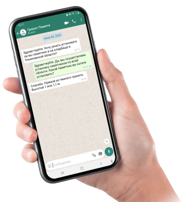 Свяжитесь с нами, мы ответим на ваши вопросы и поможем вам с выбором памятника, свяжитесь с нами по телефону  +7 (960) 837-02-98 или напишите менеджеру: